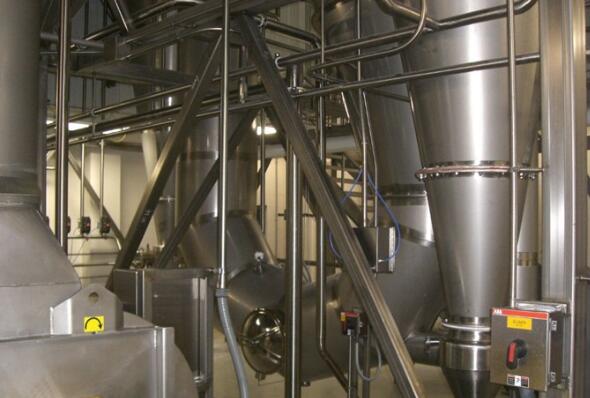 2.干燥过程中液滴的温度不高,产品的质量较好。喷雾干燥使用的温度范围非常广,即使采用高温热风,其排风温度仍不会很高,在干燥初期,物料温度不超过周围热空气的湿球湿度,干燥产品质量较好。例如,不容易发生蛋白质变化、维生素损失、氧化等缺陷。对热敏性物料、生物和药物的质量,基本上能接近于真空下干燥的标准。